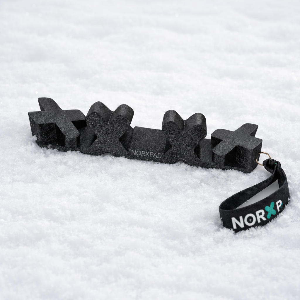 Norxpad es la forma fácil, limpia y elegante de apoyar tus esquís o tu tabla en el coche sin que se caigan, sin que se rayen y sin que te rayen el coche. Se pega al coche. Apoyas el material. Y se queda ahí. Tranquilo. Firme. Como debería pasar siempre.